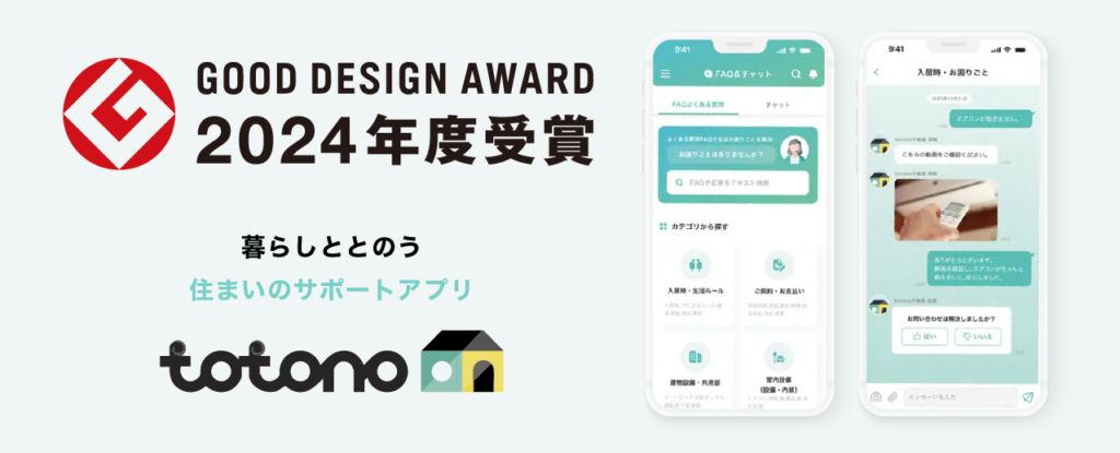 弊社が開発支援を担当させていただいている株式会社スマサポ様の入居者アプリ「totono」が、2024年度グッドデザイン賞を受賞されました。